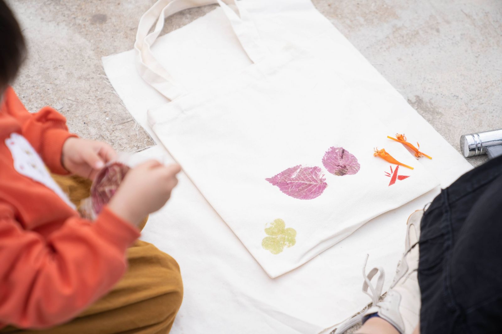 (用木頭及樹葉,製作出充滿個人風格的環保袋)