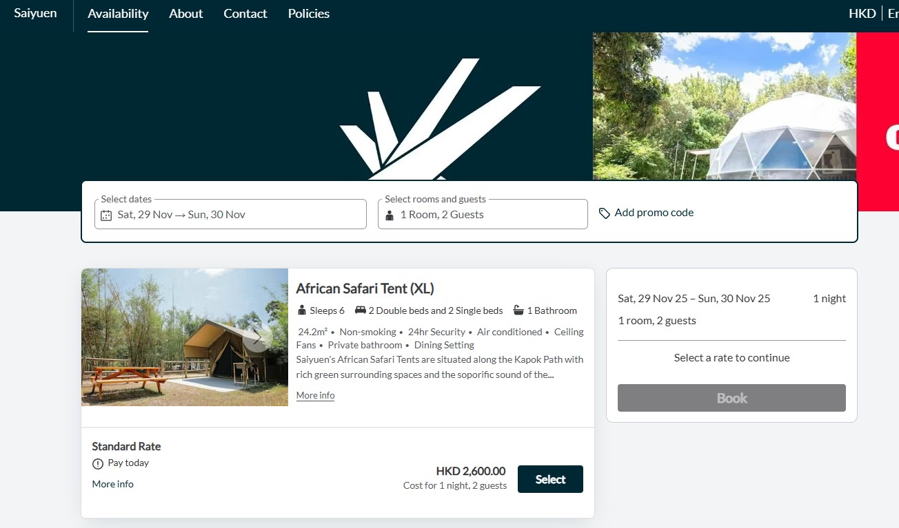 06|預訂西園營帳 Book a Tent at Saiyuen 想於活動前或後,更深入享受美好的西園假期?不要忘記預訂西園Glamping營帳!營位數量有限,請盡快預訂。